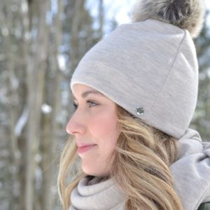 Winter hat with bamboo lining. Removable faux pom pom.