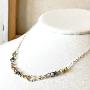 Comprised of 14 K gold-fill, twist and shiny silver mini links, all hand-formed