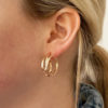These sculptural hoops are made of recycled sterling silver, and also Yellow 14K gold-fill. They measure .75″ in diameter, the width is approximately .25″. Each earring is hand formed and will be unique. The posts and backs are sterling silver.