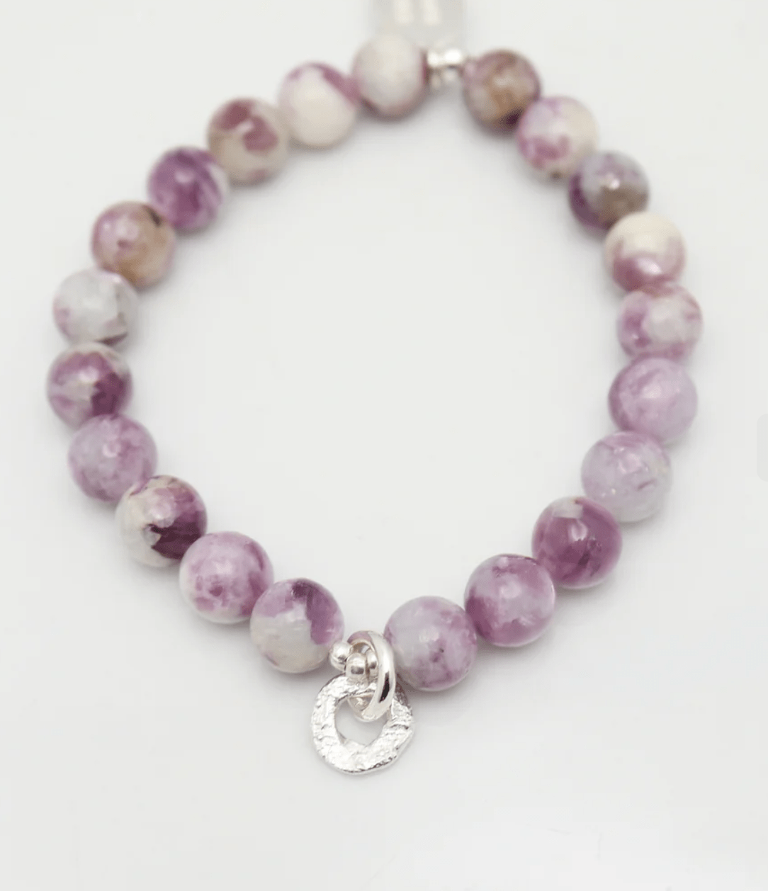 A stretch bracelet with cream & purple variations reminiscent of the wildflowers along the hillsides.