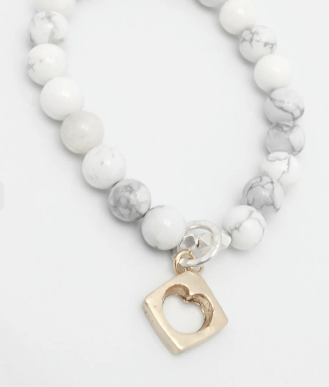 Orange Avocado – Bracelet / White Howlite with Cut out Bronze Heart Charm