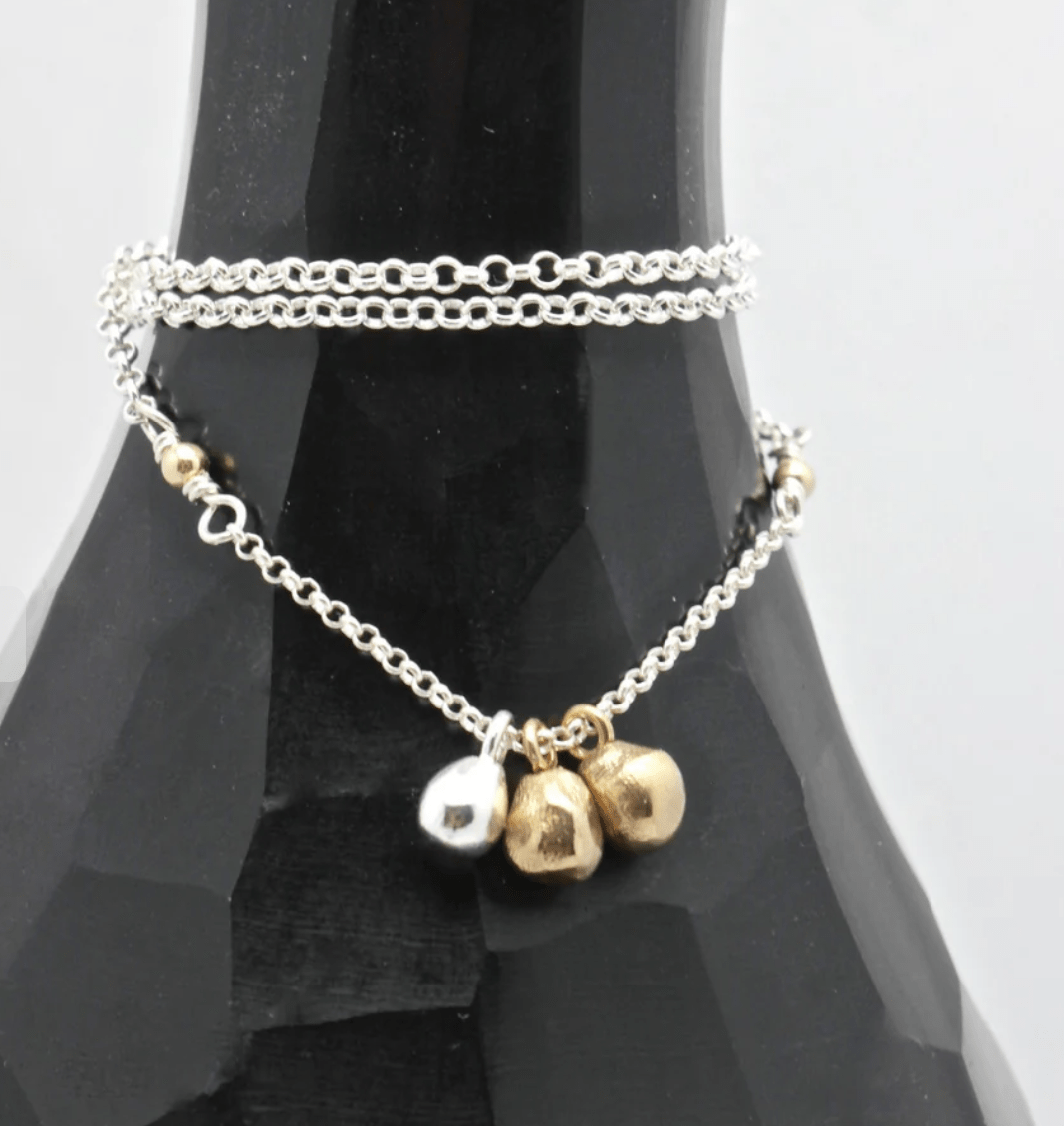 A feminine and delicate necklace. Bronze & fine silver petite bud charms float freely along a sterling silver chain. Please choose your length of necklace from the drop down menu.