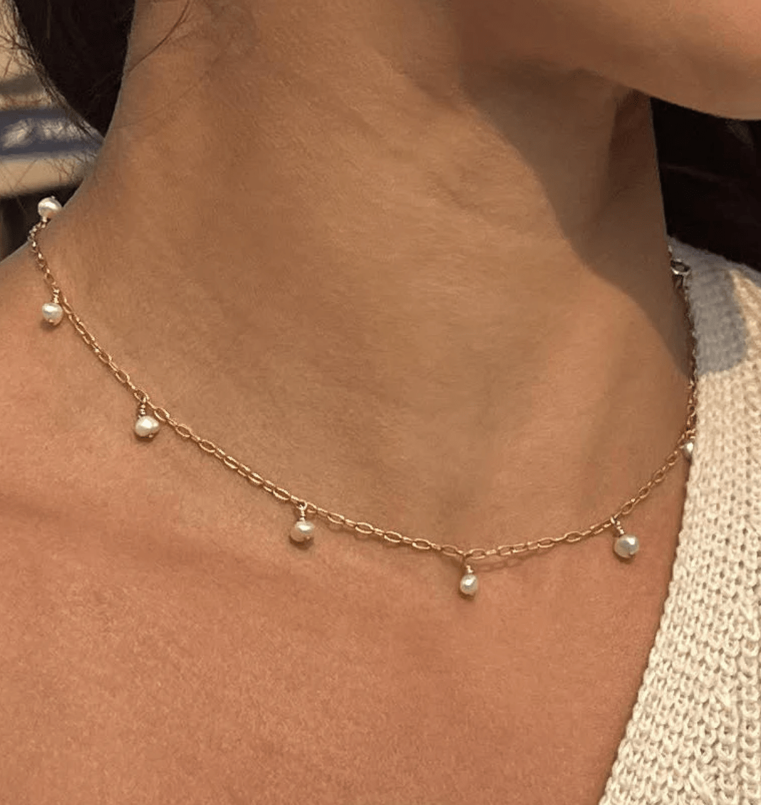 Orange Avocado – Necklace – CASCADE PEARL DROP – 16″