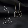The Vexta Ear Drapes bring a modern, architectural edge to the classic earring silhouette. The delicate wire forms gently cascade from your ears, creating a mesmerizing visual effect that's sure to turn heads. And with a nickel-free chain, these earrings are feather-light - you'll forget you're even wearing them. Whether you opt for the single-tone or two-tone version, the Vexta Ear Drapes will instantly elevate your look with their fresh, fashion-forward aesthetic. Pair them with a simple tee and jeans for an effortless, elevated vibe, or let them shine as the statement piece of a more dressed-up ensemble. Materials All metals are brass finished with plating (see below) Finishing 12K Gold, Rhodium, *Black Zinc on brass (*Nickel Free) Threader chains are Nickel Free* Dimensions Charms are approx. 0.75" x 1" the threader and chain is 2 1/2" long