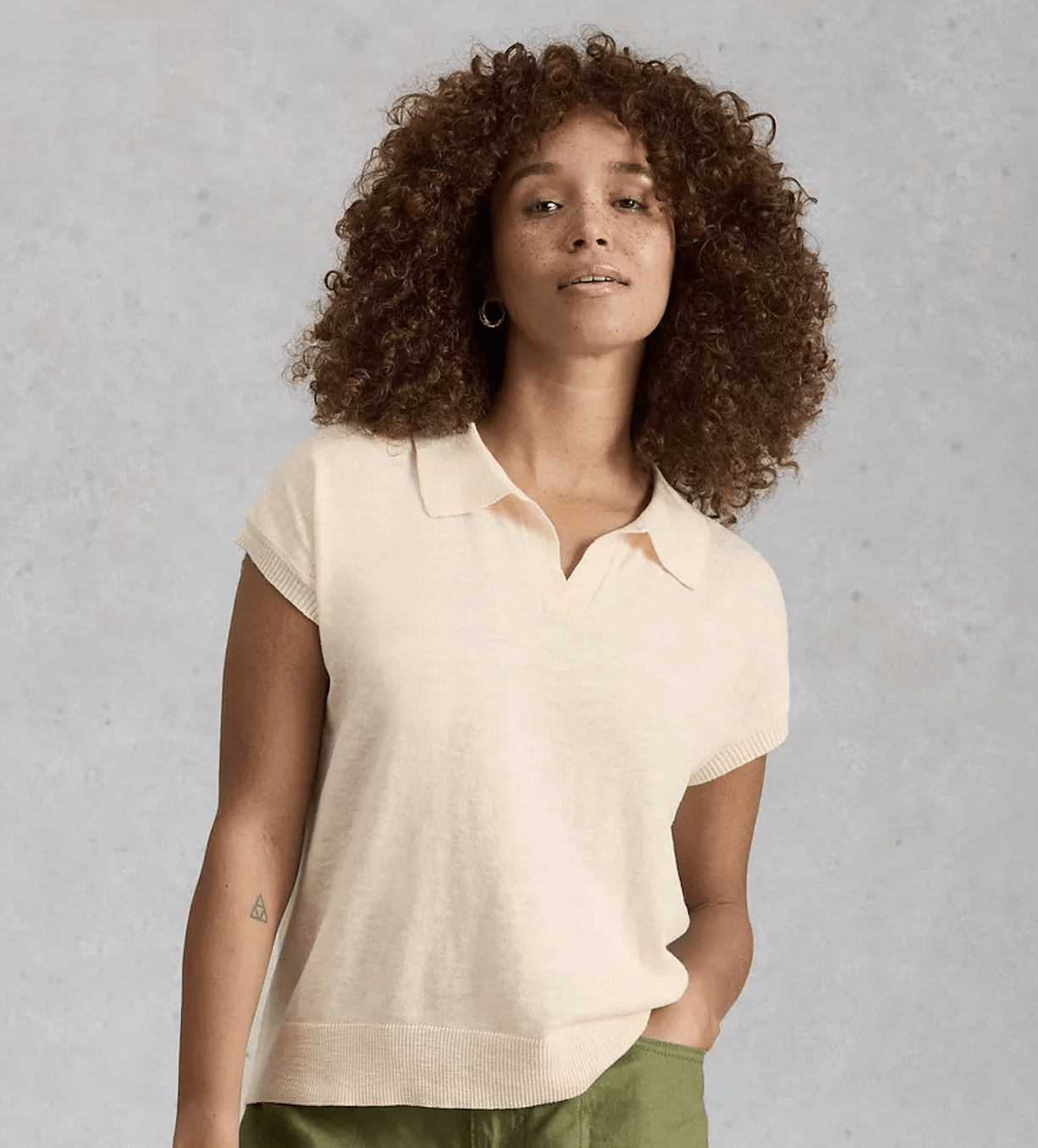 This simple, slightly sheer little number is made with organic cotton and linen. (So it feels as cool as it looks.) Tuck it into your jeans and layer it up with a cool jacket.